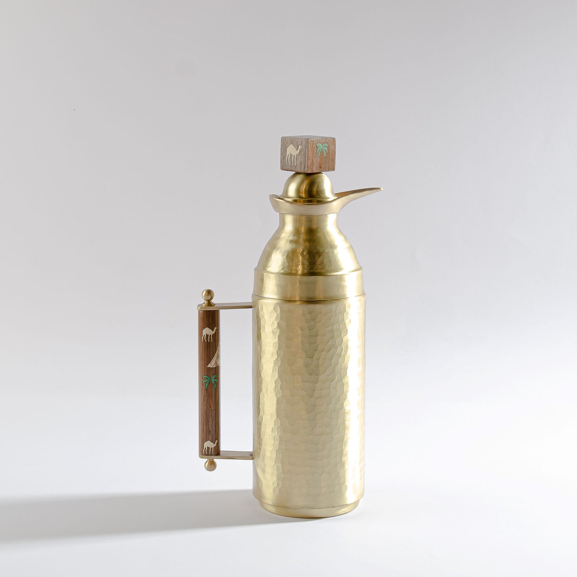 Cultural Motifs & Hand-Painted Details: Distinctive regional symbols, including palm trees, camels, and desert fortresses, are hand-painted onto the wooden handle and matching cube finial. These meaningful motifs celebrate Middle Eastern heritage and elevate the flask into a decorative, story-rich piece.