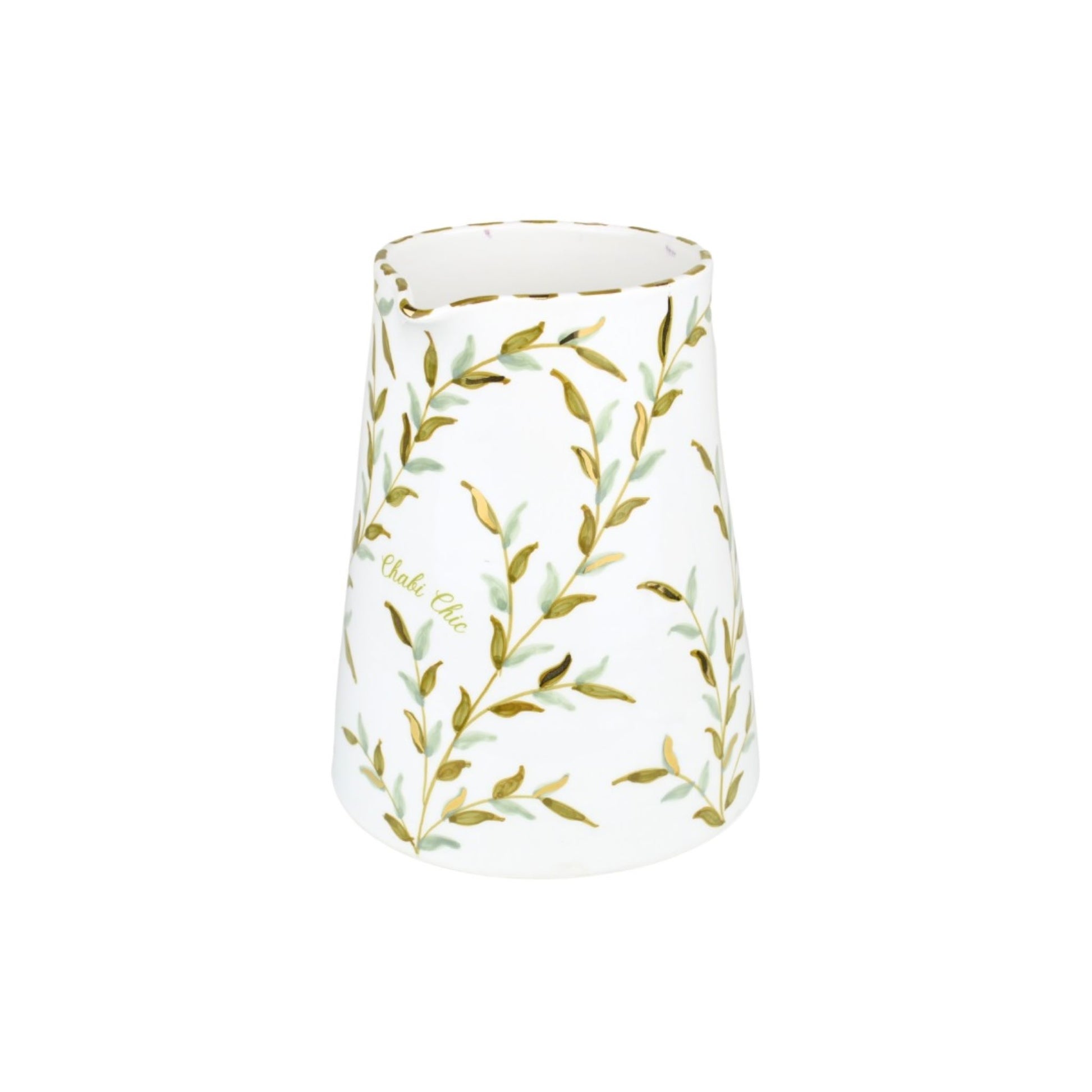 Each pitcher is handcrafted from fine ceramic and enhanced with genuine 12-carat gold accents. From shaping to decorative painting and final firing, every step is carried out by skilled artisans, resulting in a refined piece that honors Moroccan craftsmanship and timeless Chabi Chic design.