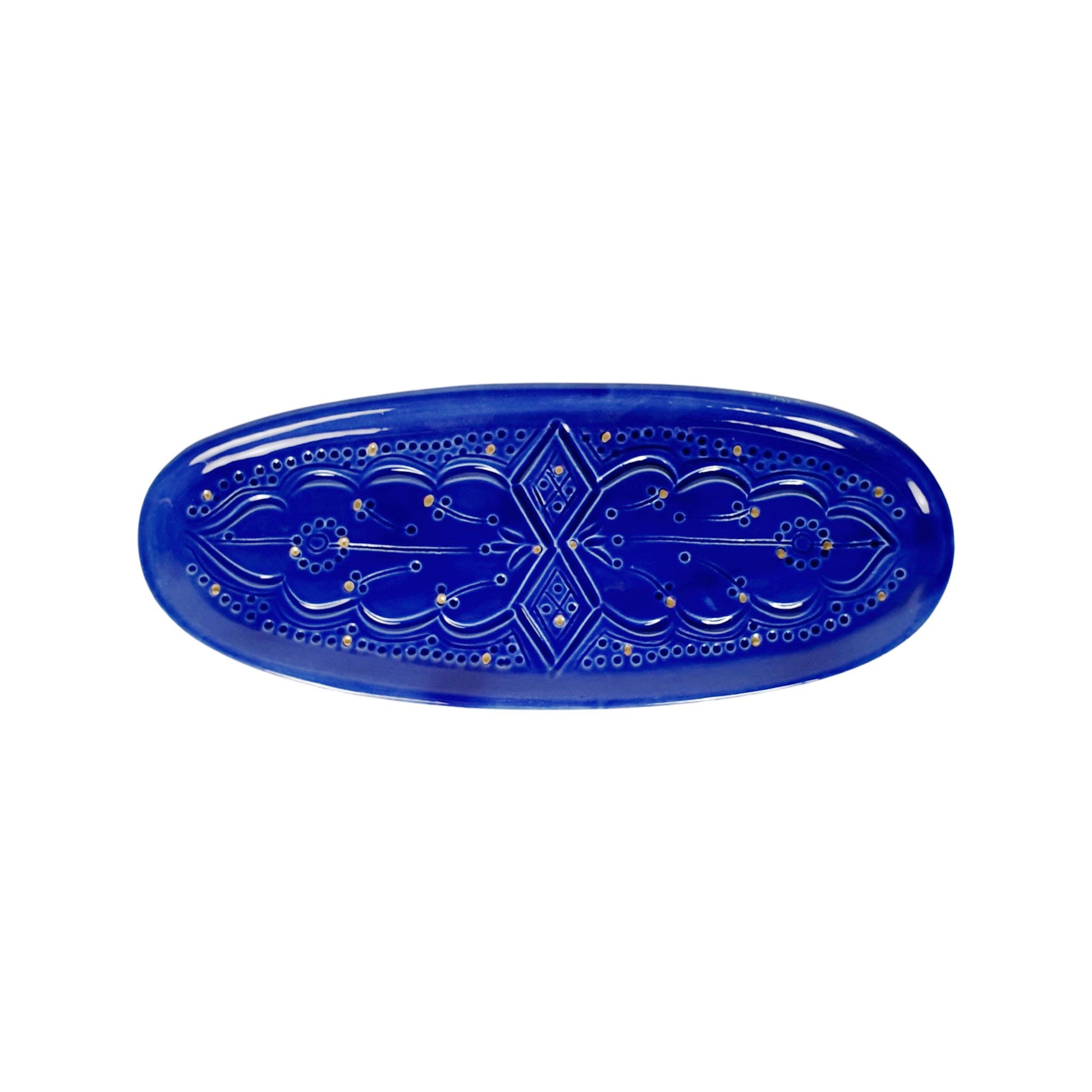 Each tray is handcrafted from fine ceramic and enriched with genuine 12-carat gold accents. Every step, from molding to final firing, is performed by skilled artisans, resulting in a refined, durable piece that celebrates traditional Moroccan craftsmanship.